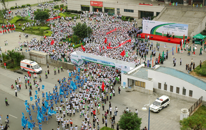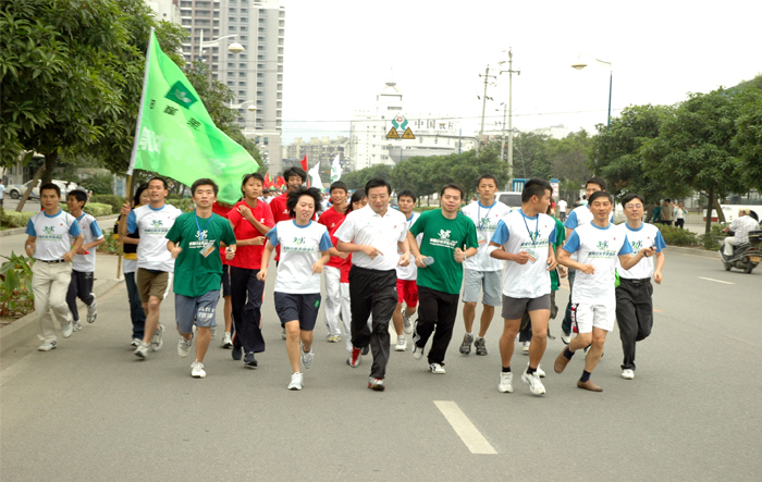 每年11月1日安利紐崔萊都要組織健康跑,2014年在福州省體育館閃亮開跑。在健康跑中,每個(gè)人都是生活的冠軍,都是自己的健康的主宰者。這場(chǎng)以跑步倡導(dǎo)健康生活的活動(dòng)吸引了超過(guò)1.5萬(wàn)人,難以抵擋的熱情讓整個(gè)福州城都為之沸騰了!保羅服裝公司與安利長(zhǎng)期合作,每年都為安利提供款式新穎的T恤衫。