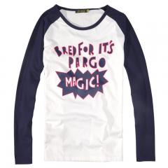 【定制】韓版印花檫肩袖長(zhǎng)袖圓領(lǐng)T恤衫