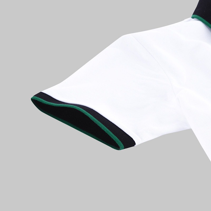 白色領(lǐng)袖撞色,男女時尚T恤款式定制,可刺繡公司標(biāo)志