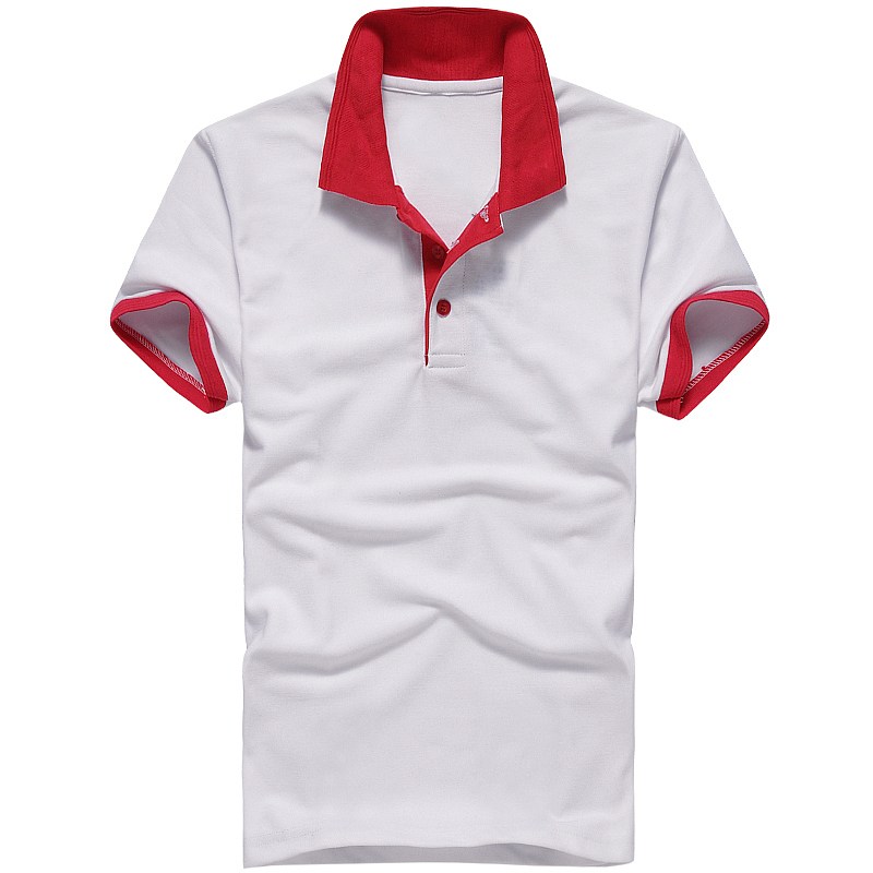 白色領(lǐng)袖撞色,男女時(shí)尚T恤款式定制,可刺繡公司標(biāo)志