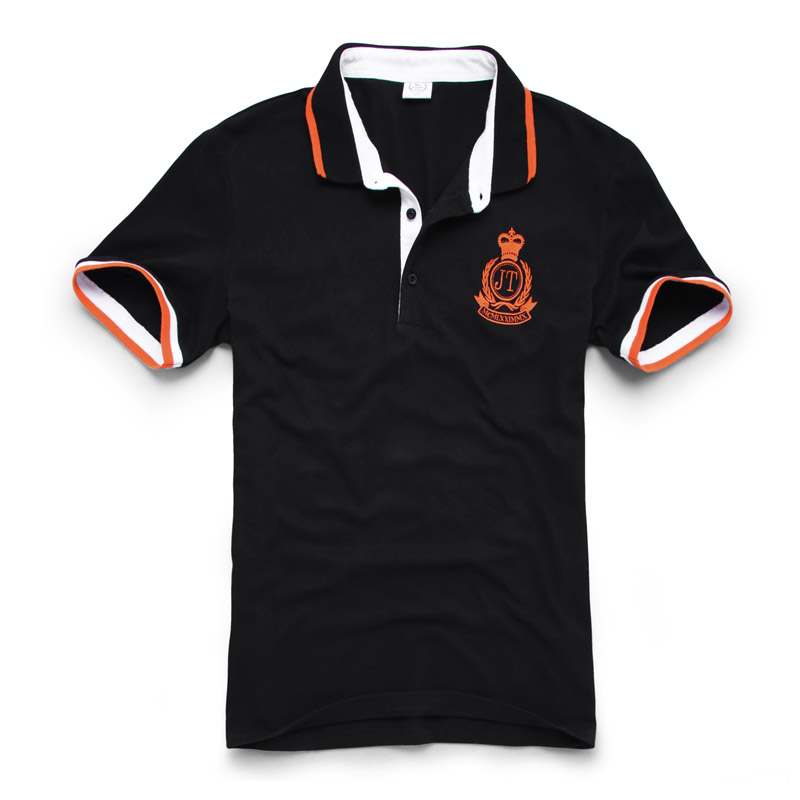 白色領(lǐng)袖撞色,男女時(shí)尚T恤款式定制,可刺繡公司標(biāo)志