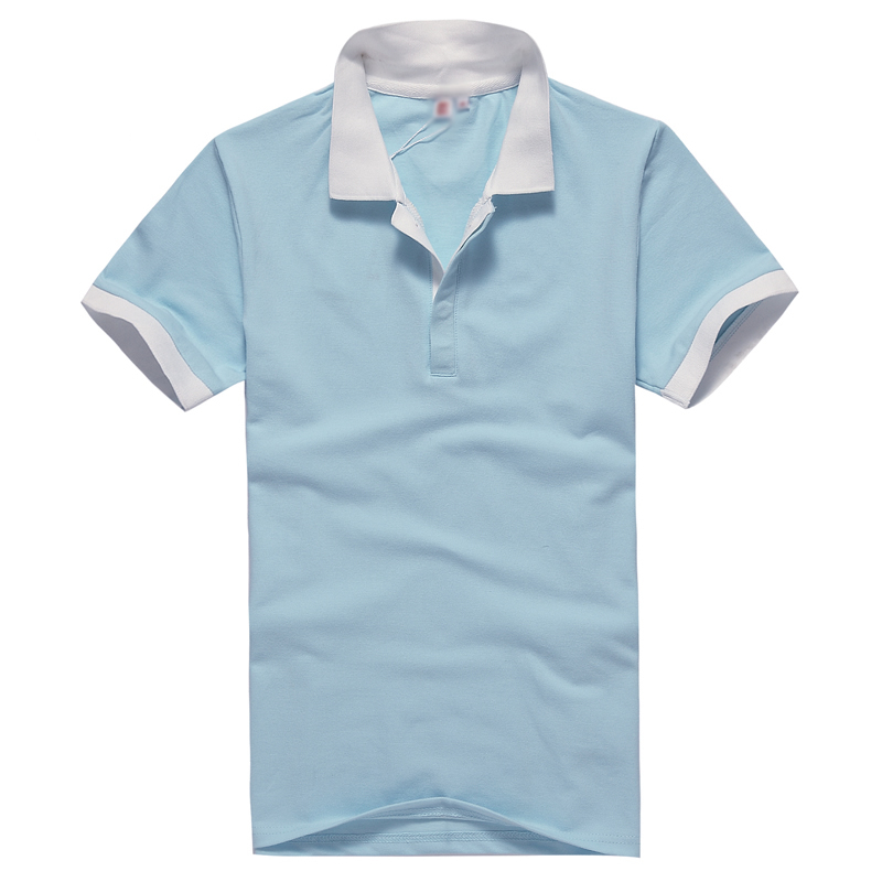 白色領(lǐng)袖撞色,男女時尚T恤款式定制,可刺繡公司標(biāo)志