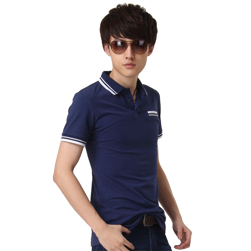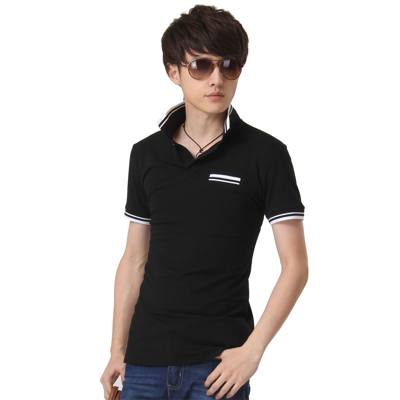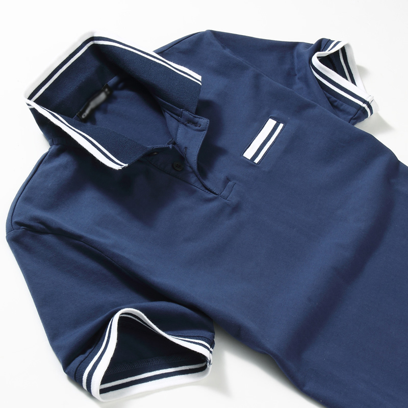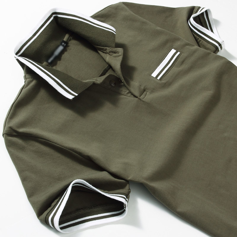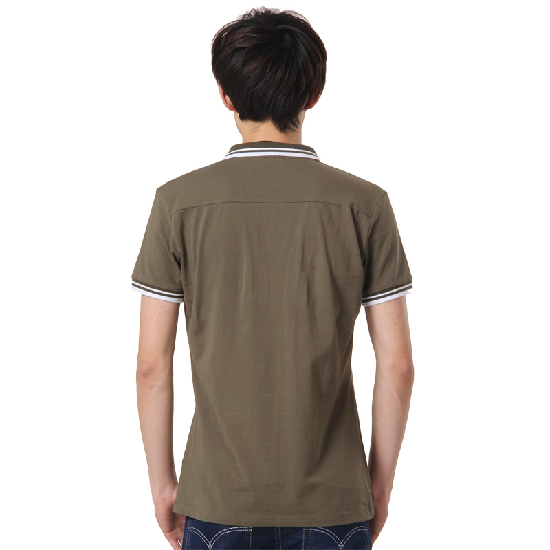 花灰色衣領(lǐng)袖口撞色,翻領(lǐng)短袖T恤衫,時尚款式定制,精梭純棉品質(zhì)