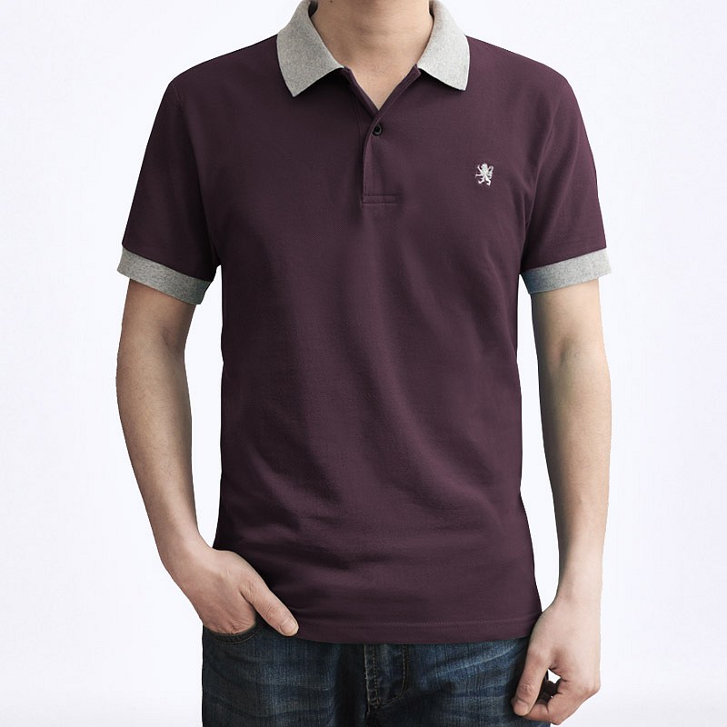 花灰色衣領(lǐng)袖口撞色,翻領(lǐng)短袖T恤衫,時尚款式定制,精梭純棉品質(zhì)