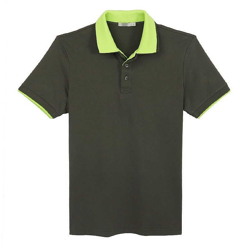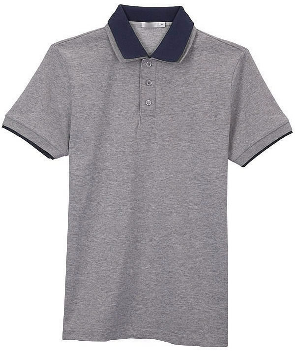 花灰色衣領袖口撞色,翻領短袖T恤衫,時尚款式定制,精梭純棉品質(zhì)