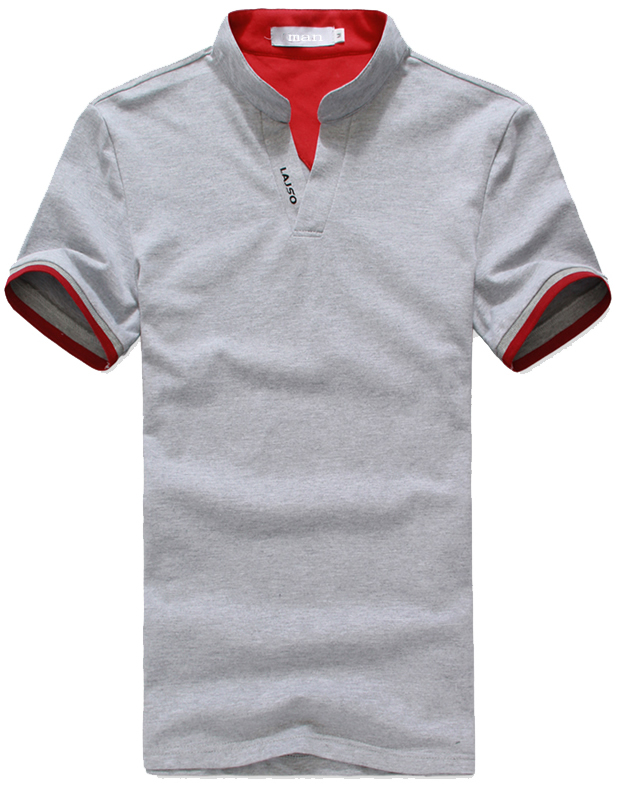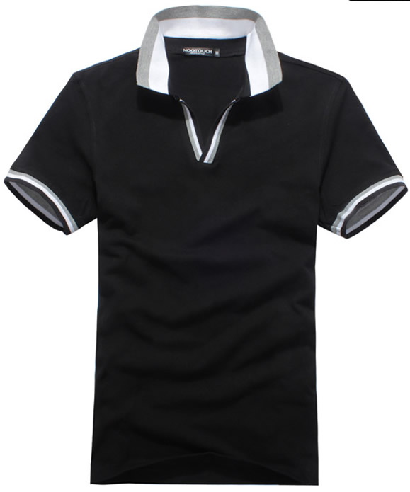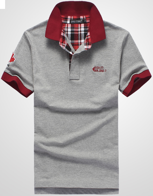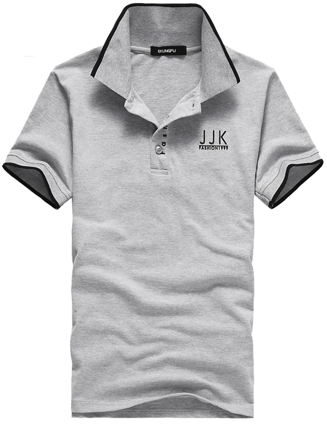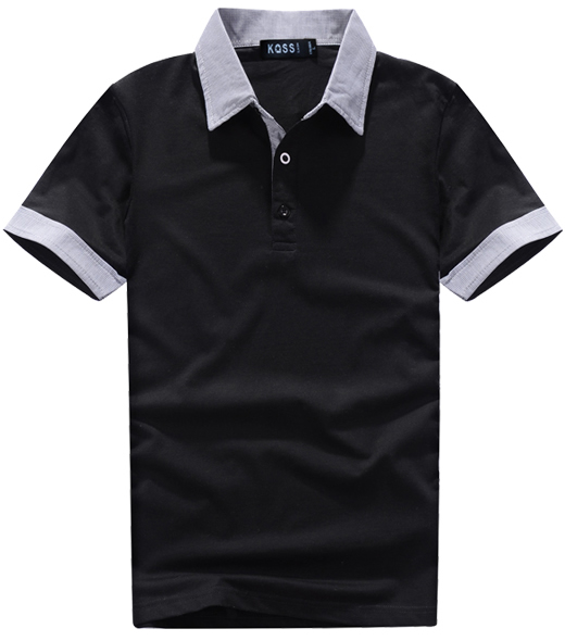 花灰色衣領(lǐng)袖口撞色,翻領(lǐng)短袖T恤衫,時尚款式定制,精梭純棉品質(zhì)