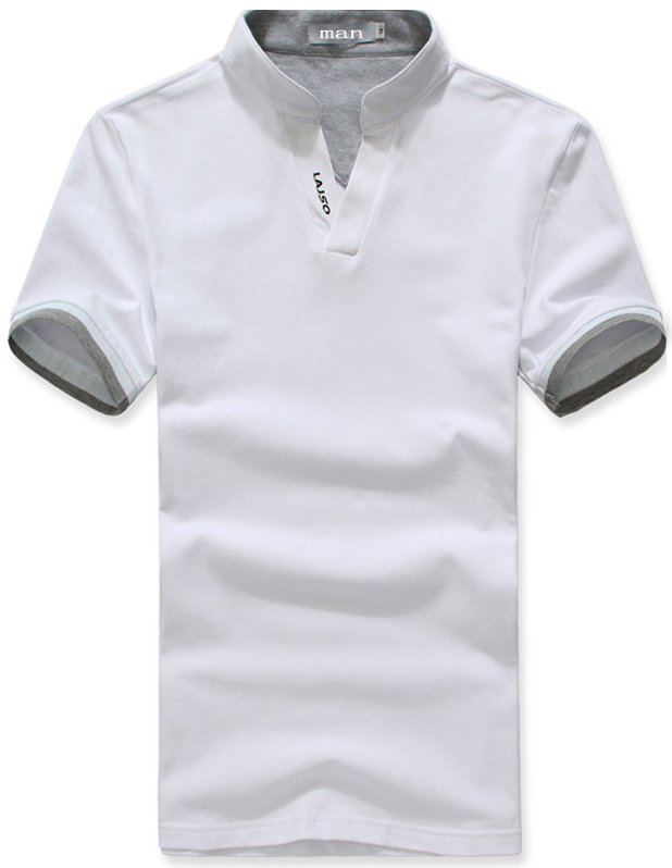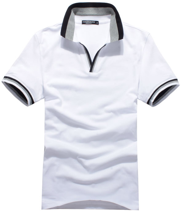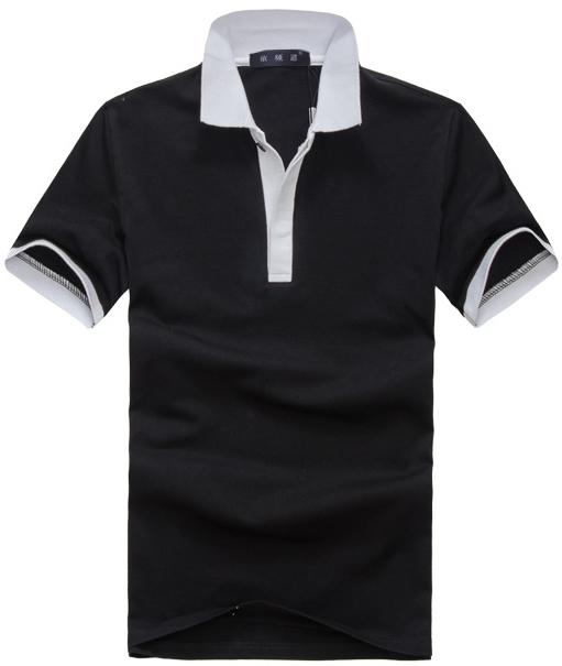 白色領(lǐng)袖撞色,男女時尚T恤款式定制,可刺繡公司標志