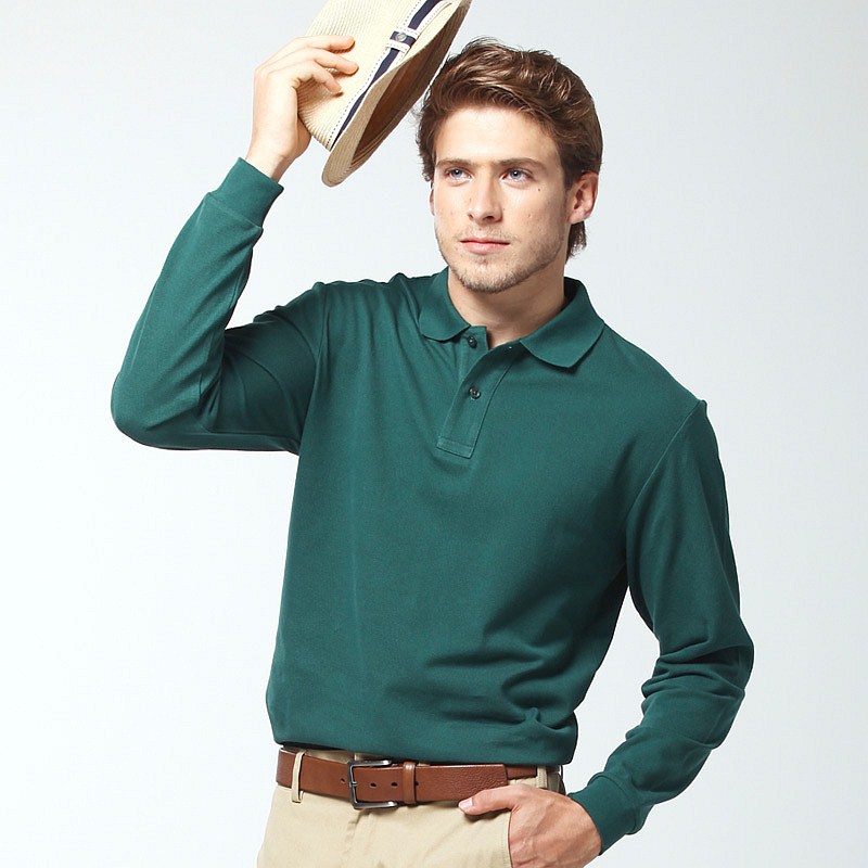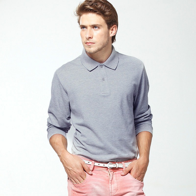 翻領(lǐng)長袖T恤衫,純色款式定制,經(jīng)典男女款式