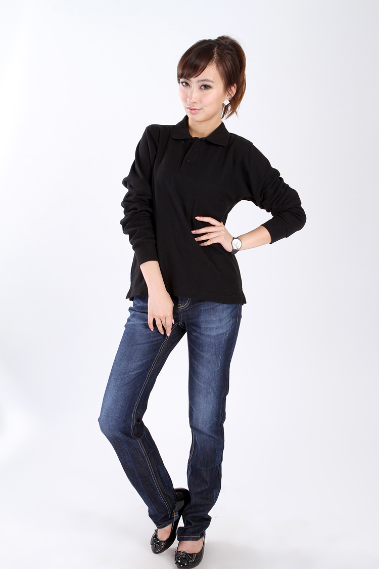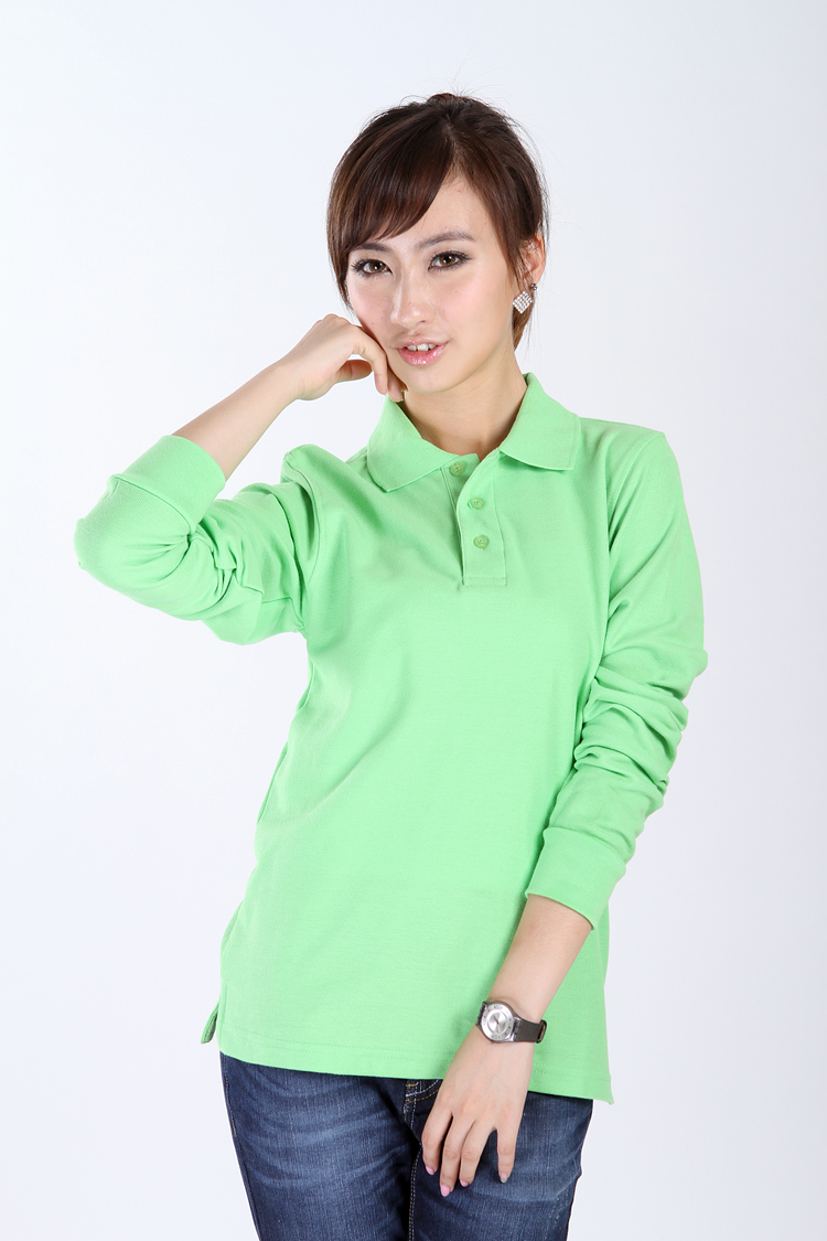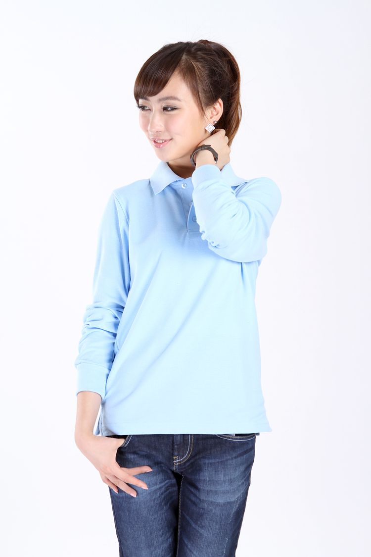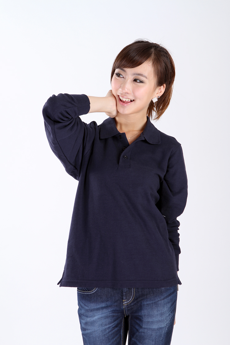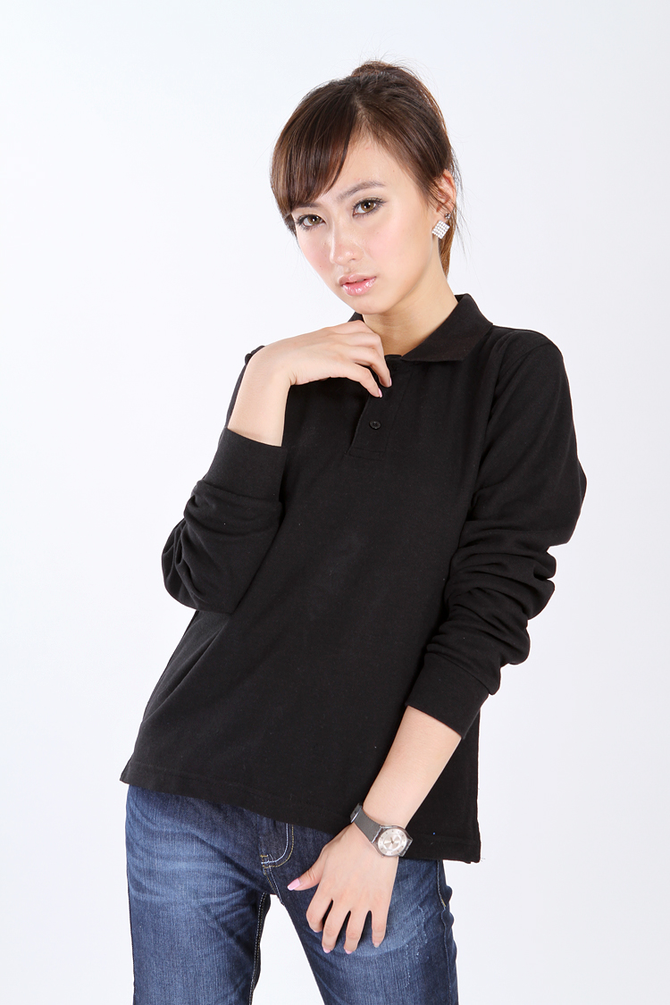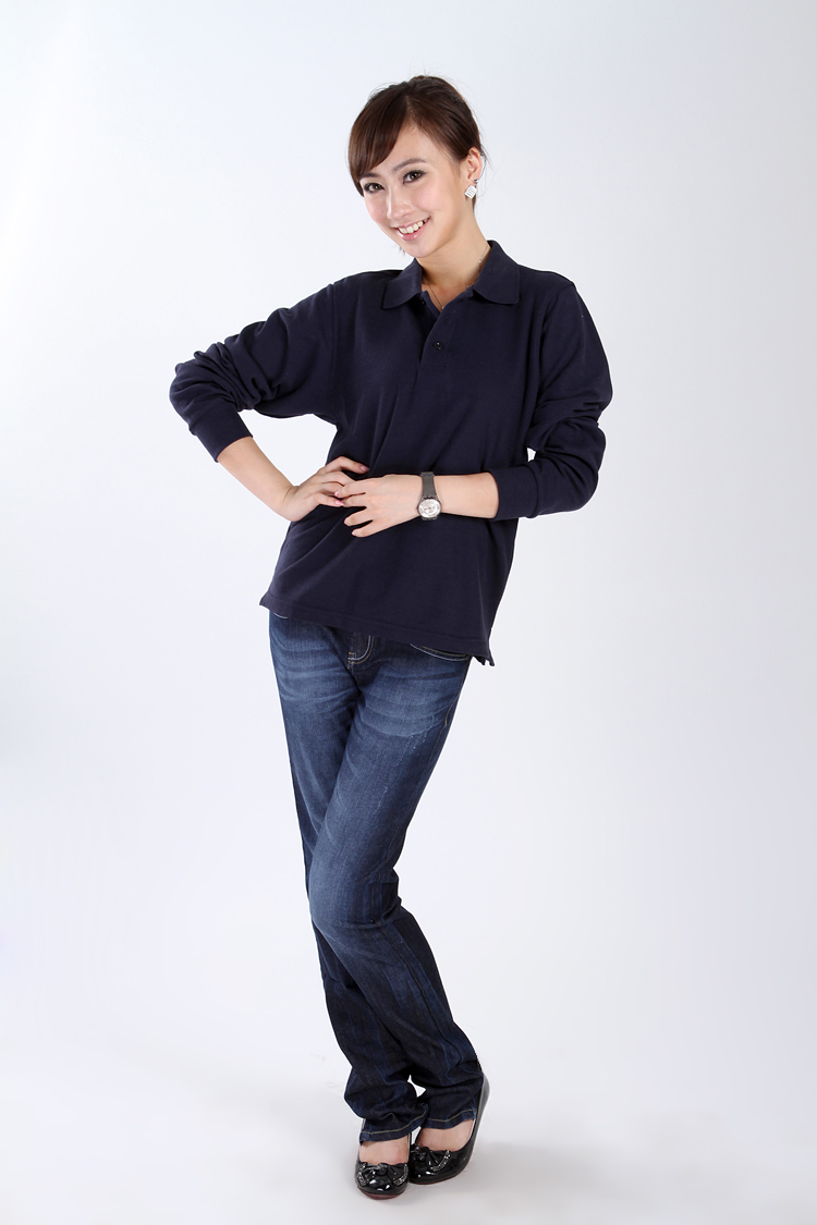 翻領(lǐng)長袖T恤衫,純色款式定制,經(jīng)典男女款式