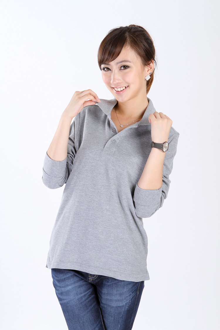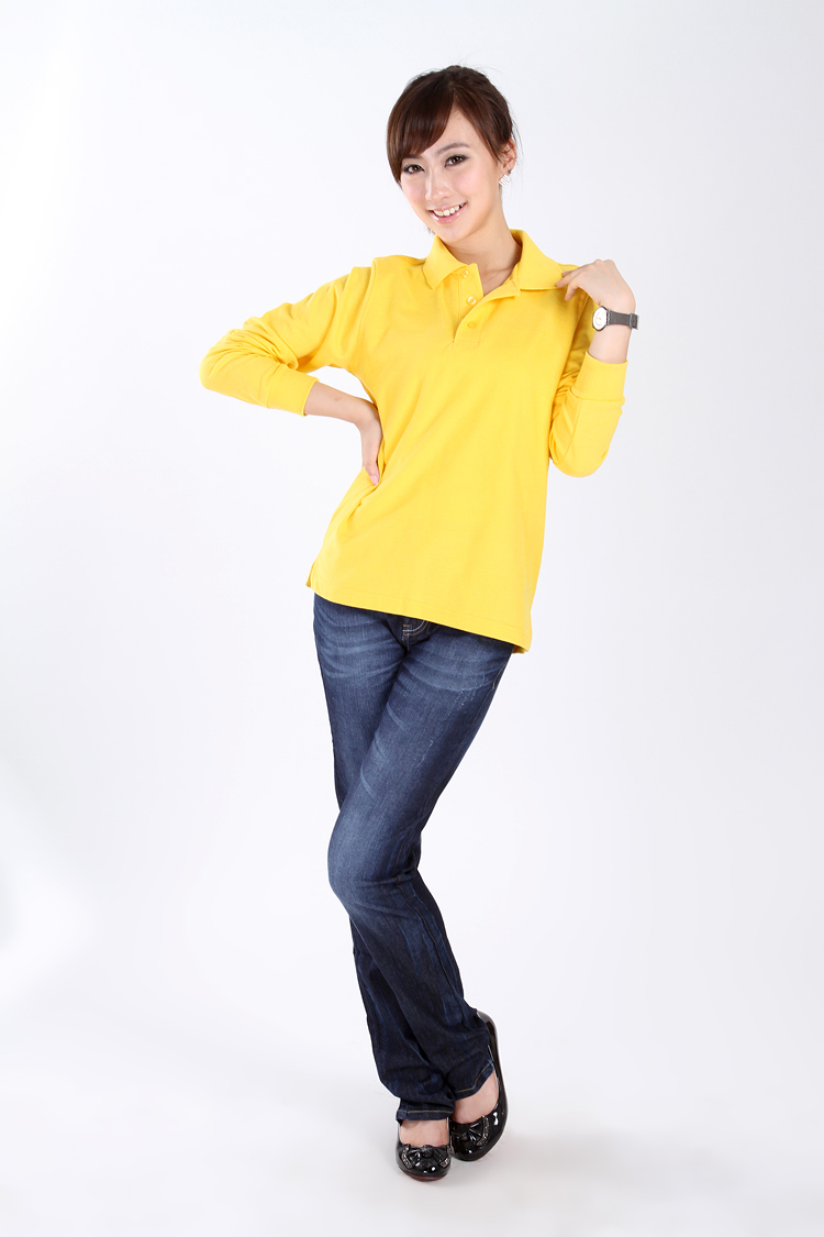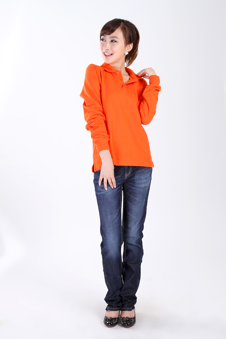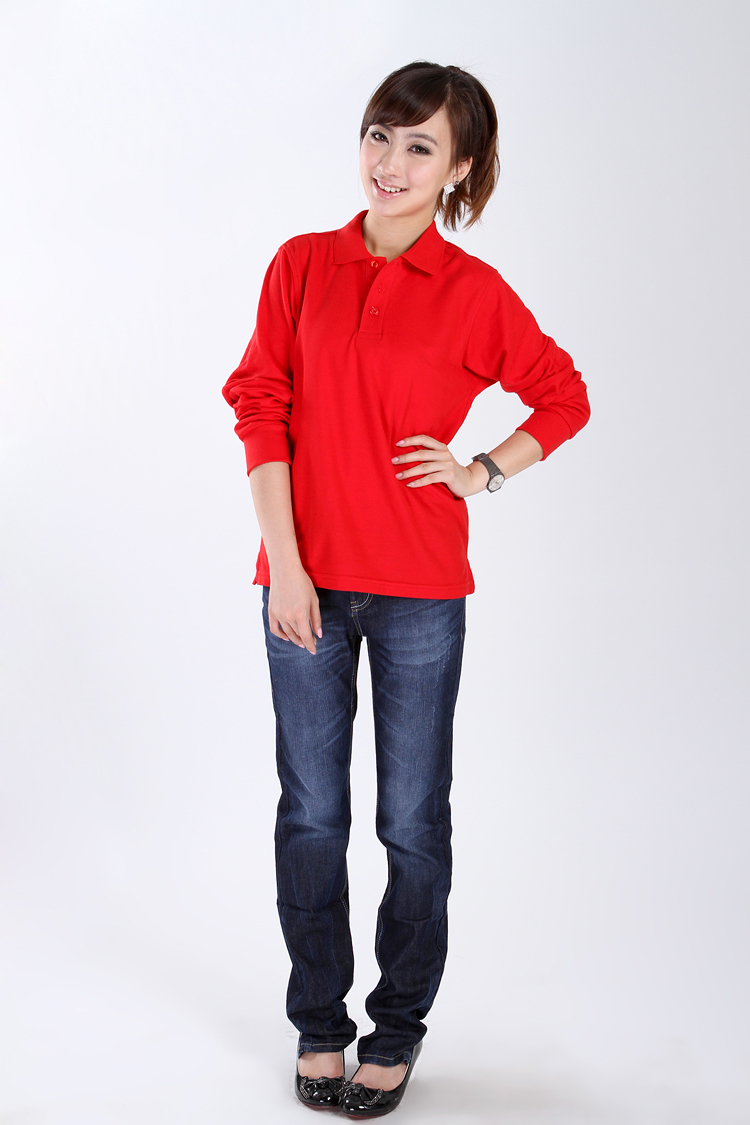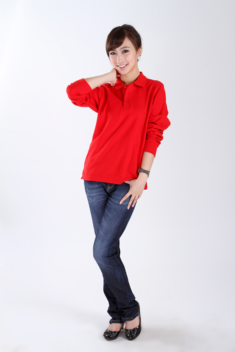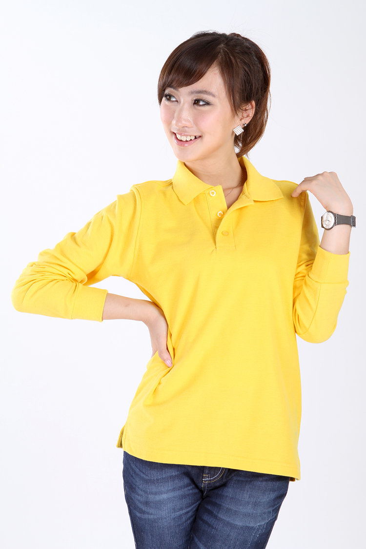 翻領(lǐng)長袖T恤衫,純色款式定制,經(jīng)典男女款式