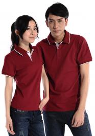 棗紅色珠地純棉POLO衫,領(lǐng)袖白色間條撞色,男女時(shí)尚款式 1