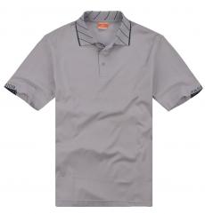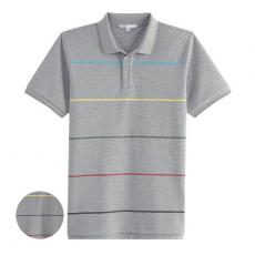 【定制】花灰色條紋純棉T恤衫 男士翻領短袖POLO訂做
