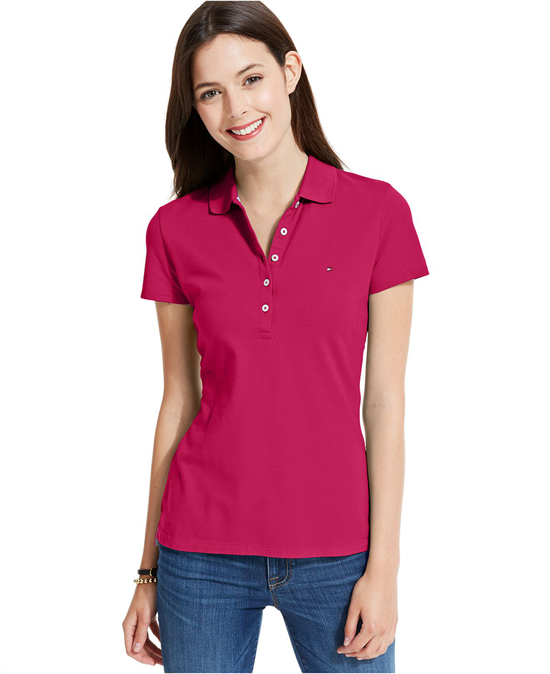 時尚紅色工裝女士翻領T恤訂購