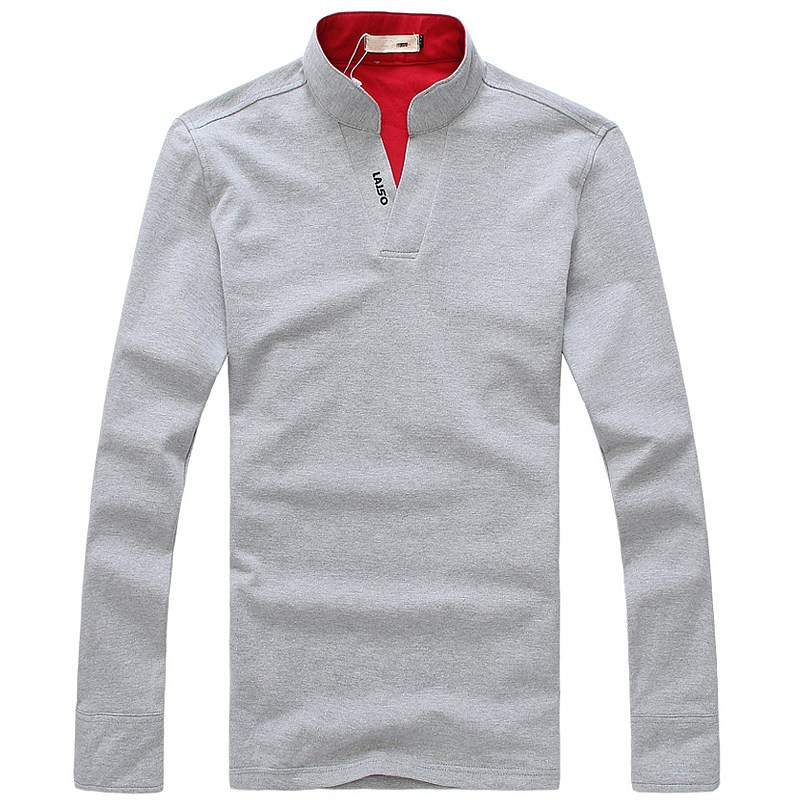 淺花灰色時(shí)尚立領(lǐng)長(zhǎng)袖T恤衫訂制