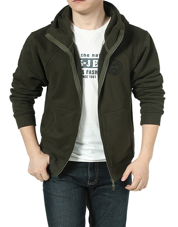 > 時(shí)尚軍綠色連帽開(kāi)衫衛(wèi)衣