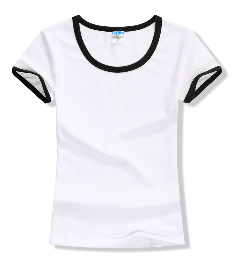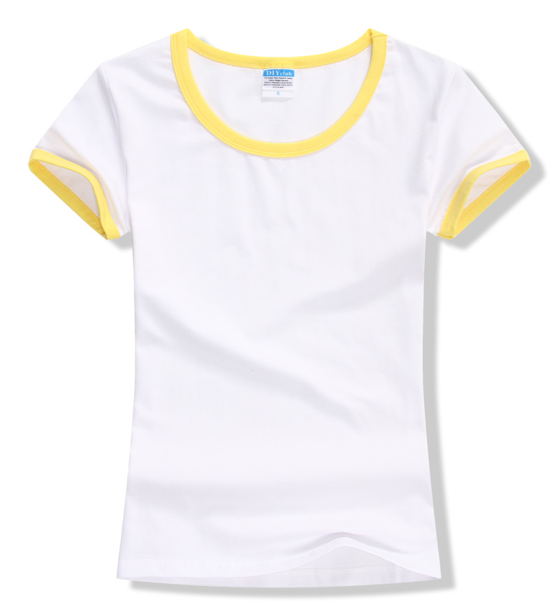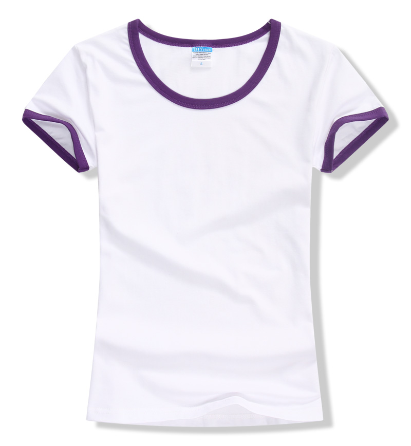 女裝圓領短袖T恤衫,領袖撞色款式,7個顏色現(xiàn)貨T恤衫批發(fā)