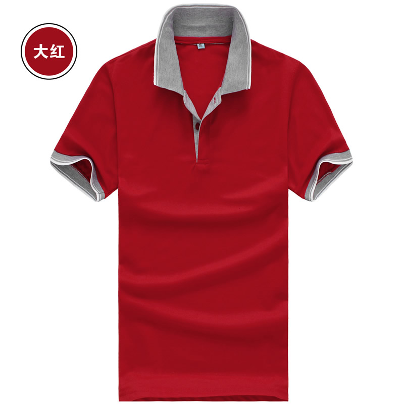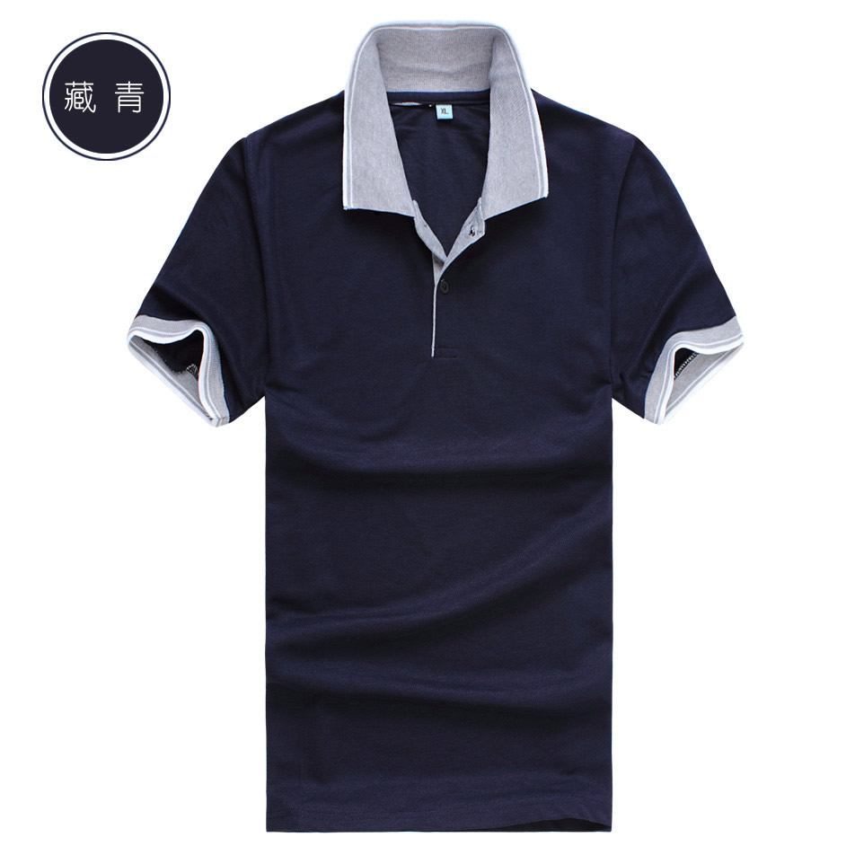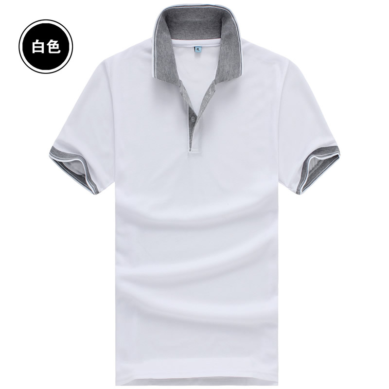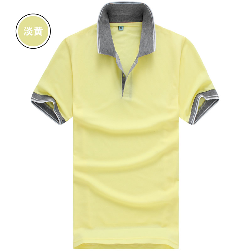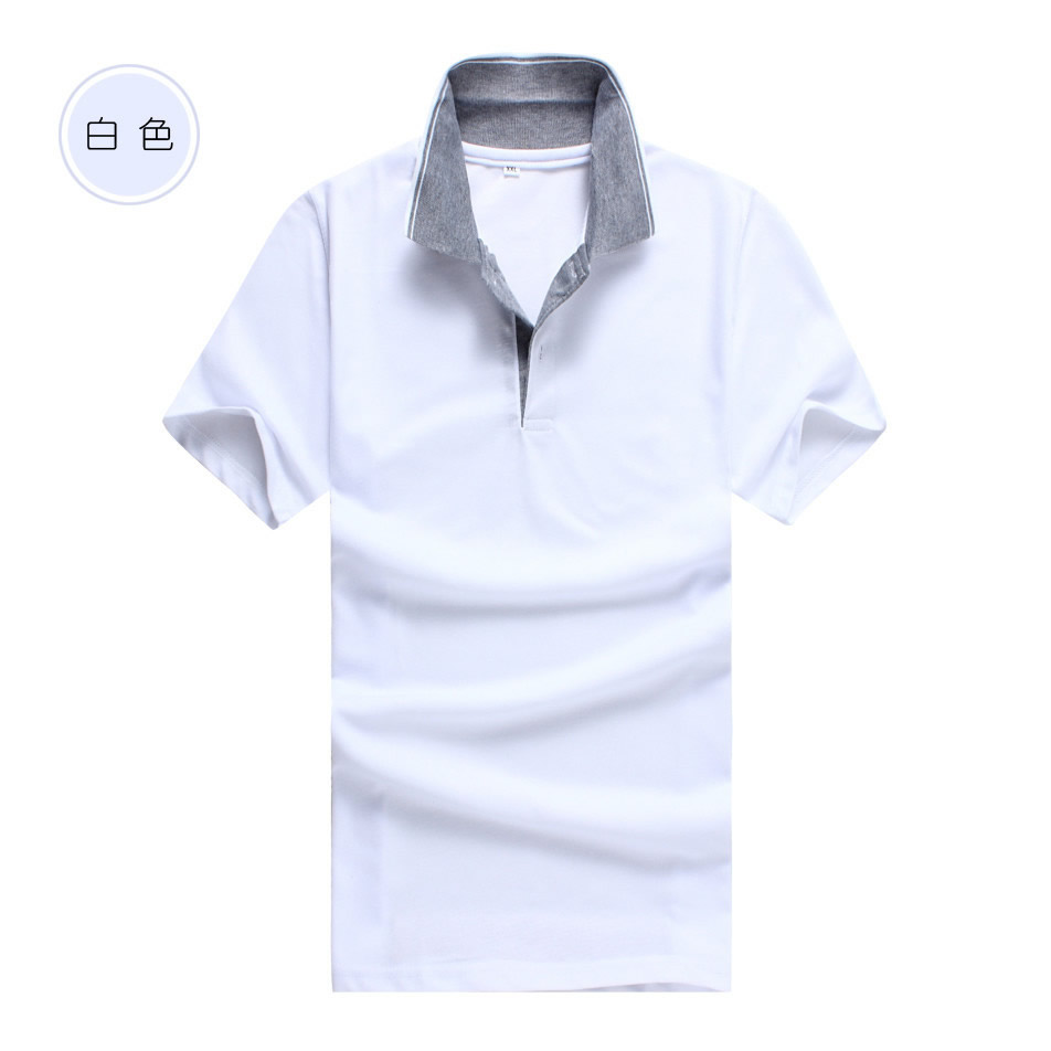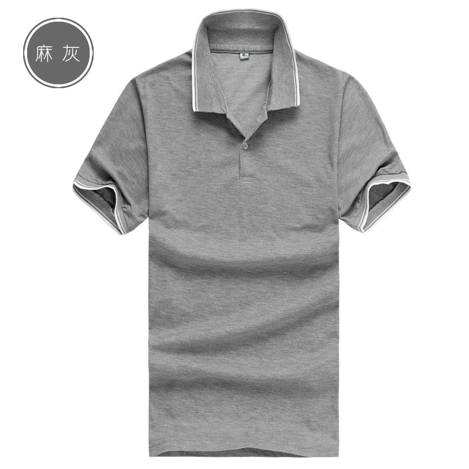 花灰色衣領(lǐng)袖口撞色,翻領(lǐng)短袖T恤衫,時尚款式定制,精梭純棉品質(zhì)