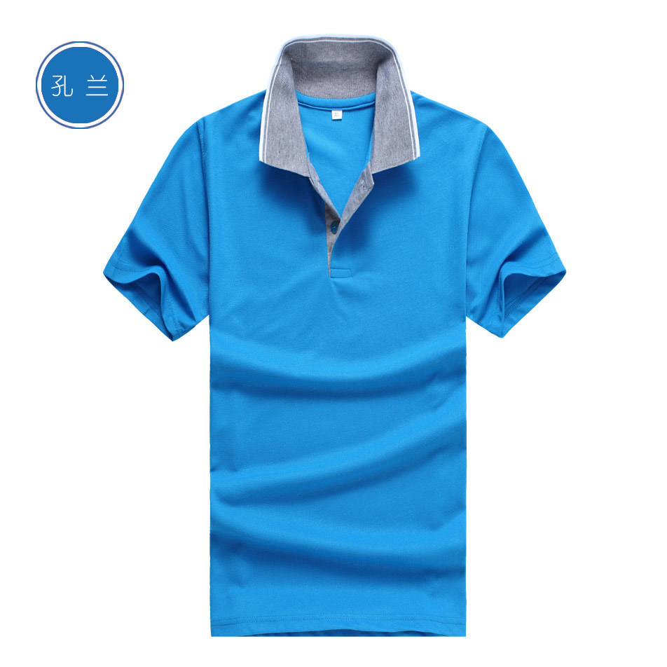 翻領(lǐng)短袖t恤衫,襯衫格子衣領(lǐng)定制,幾十個顏色可選,刺繡企業(yè)logo