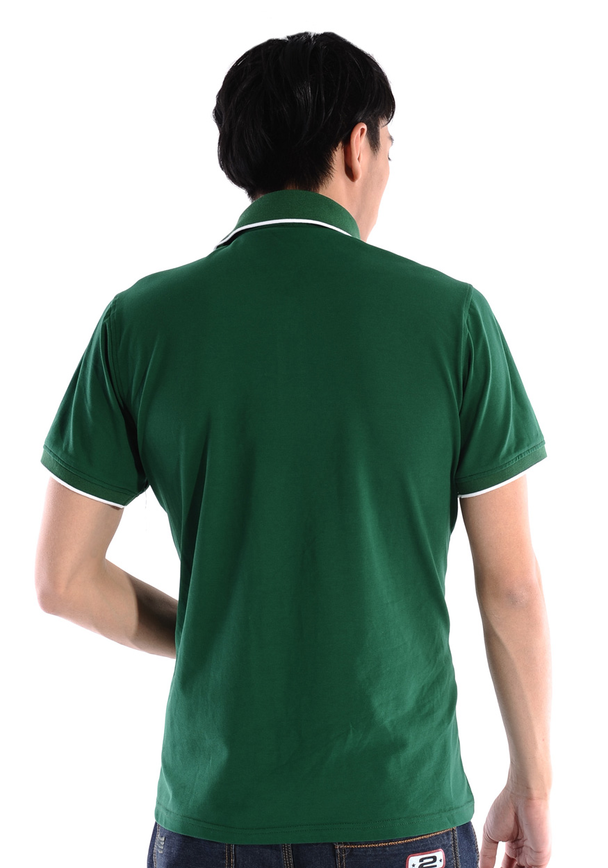 墨綠色珠地純棉,領(lǐng)袖白色間條撞色款式定制 1