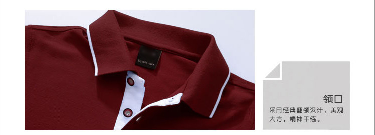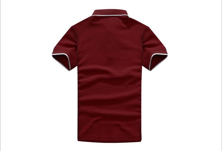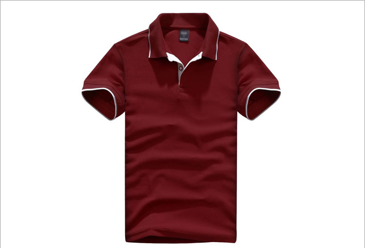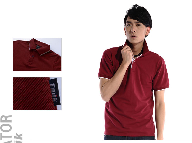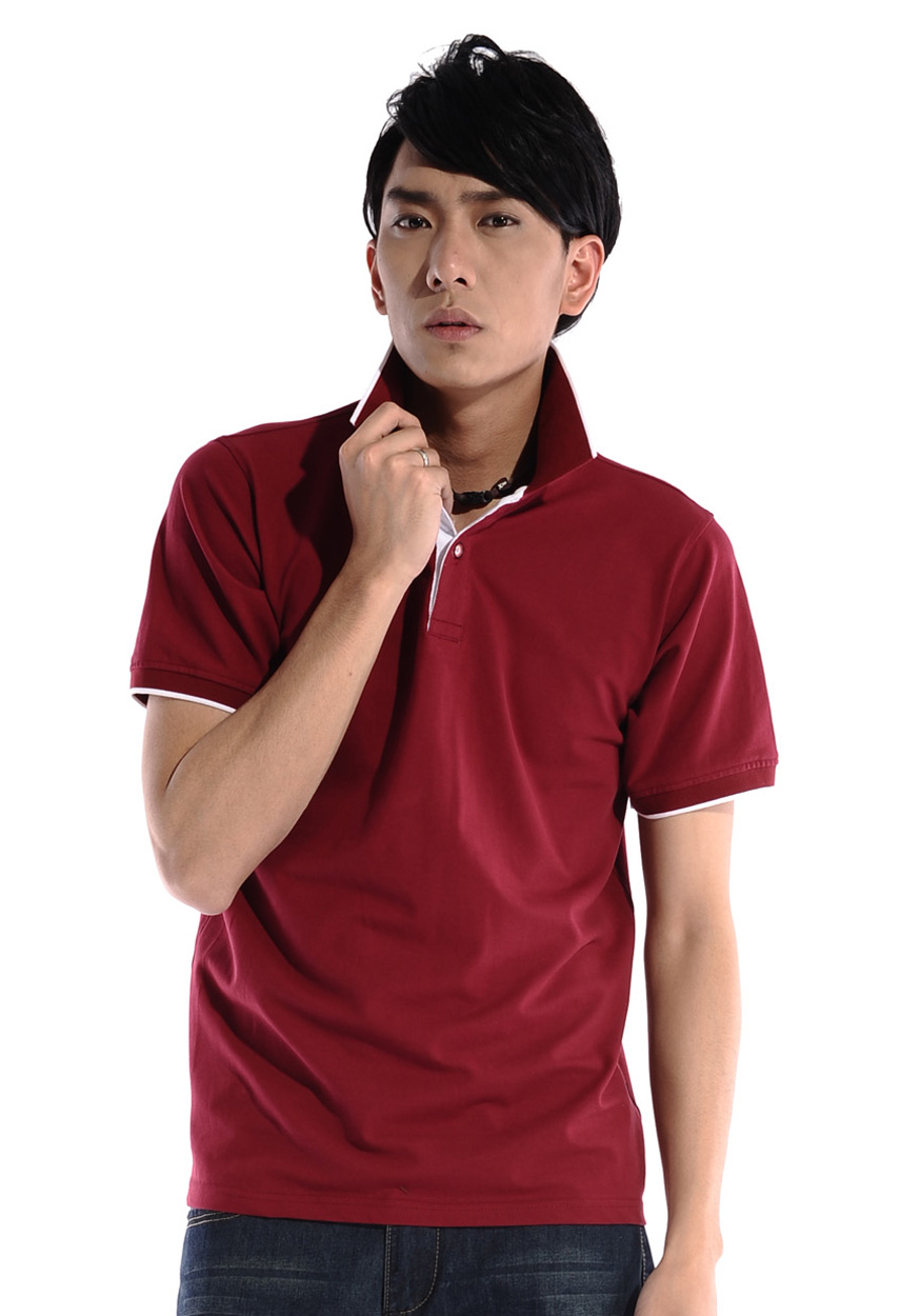 棗紅色珠地純棉POLO衫,領袖白色間條撞色,男女時尚款式 1