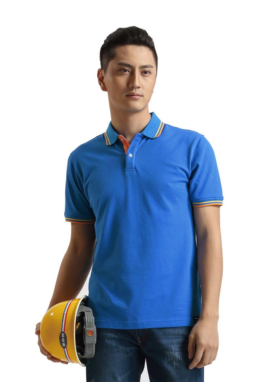 > 天藍色珠地棉T恤衫,領袖撞白色,男女時尚款定做 1