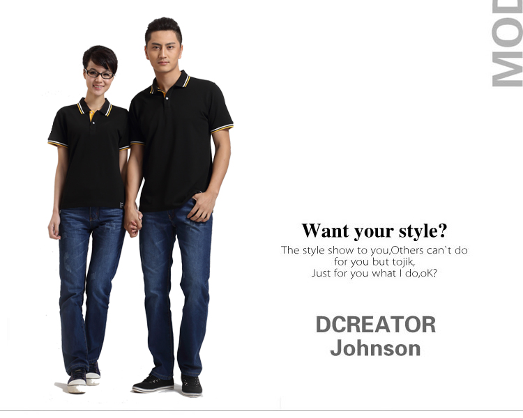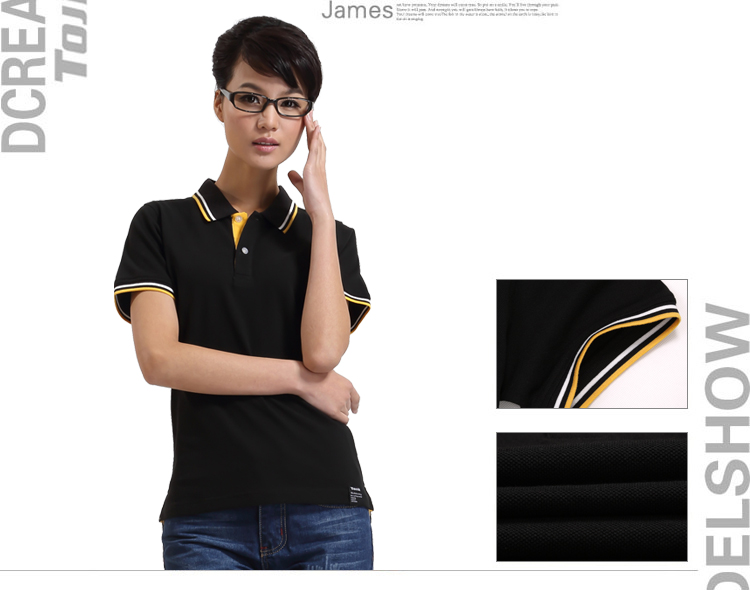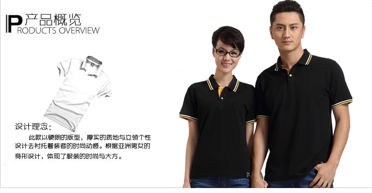 白色領(lǐng)袖撞色,男女時(shí)尚T恤款式定制,可刺繡公司標(biāo)志