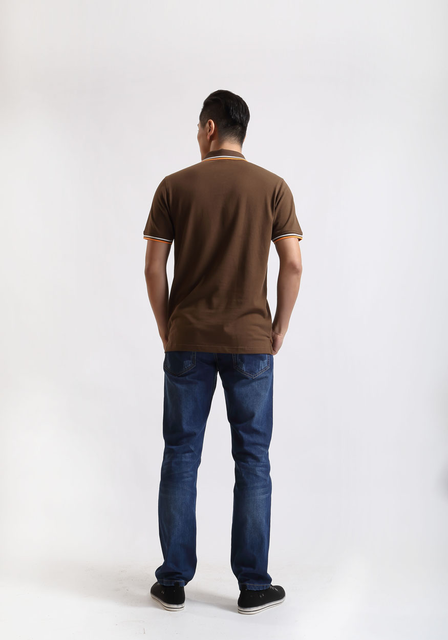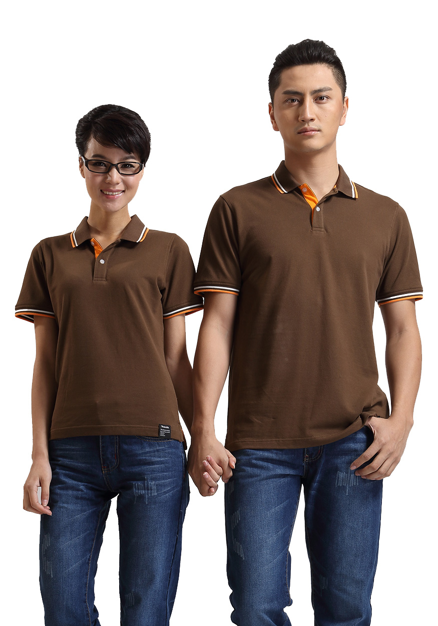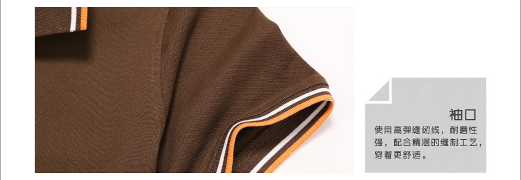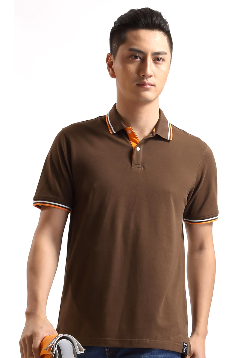 咖啡色珠地純棉POLO衫,領(lǐng)袖間條撞色,男女時(shí)尚t恤衫制作