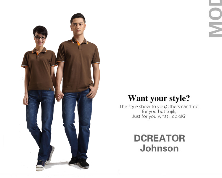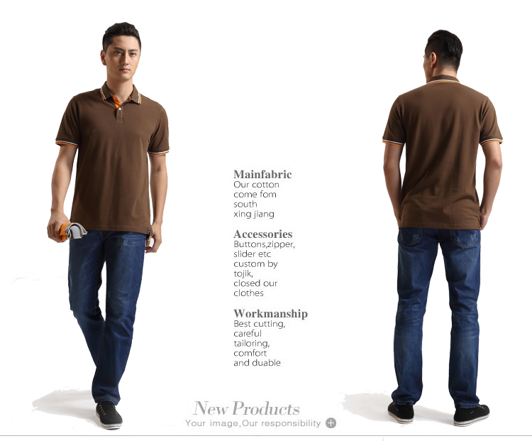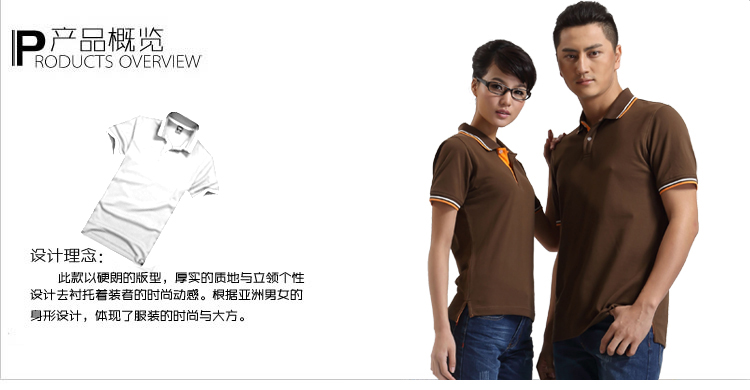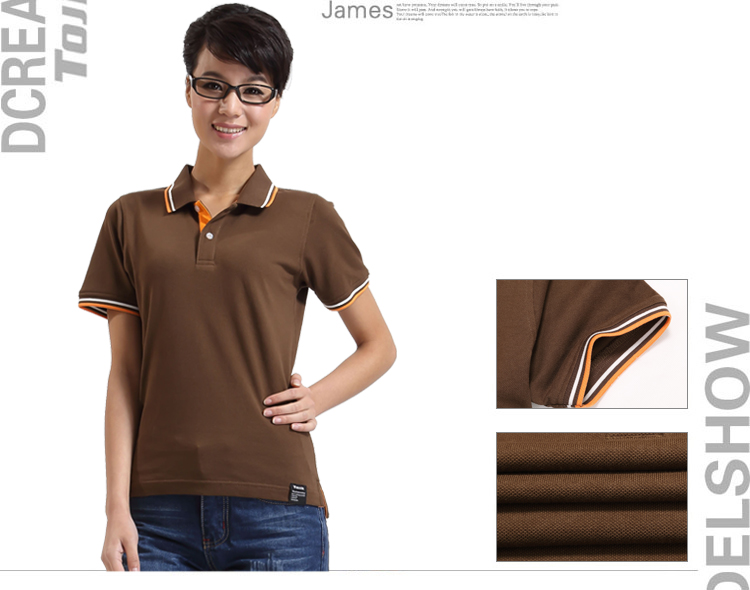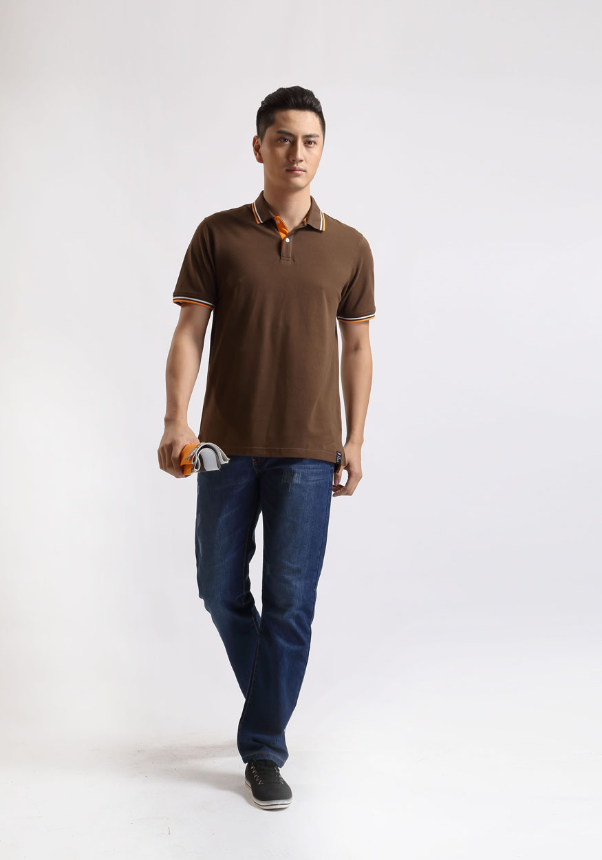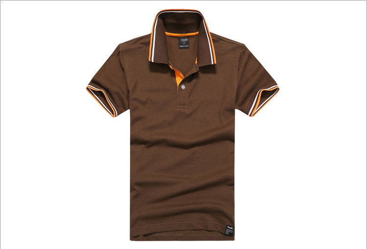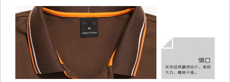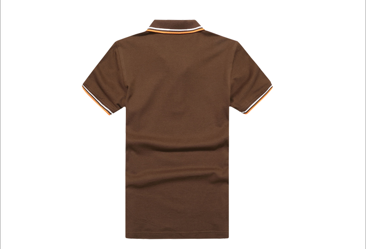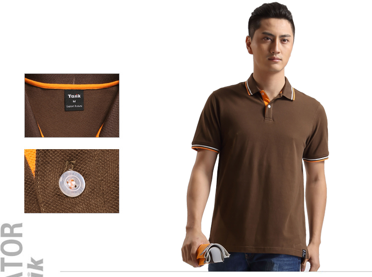 > 咖啡色珠地純棉POLO衫,領(lǐng)袖間條撞色,男女時(shí)尚t恤衫制作