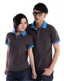 深紫色男女時尚工裝翻領(lǐng)T恤衫