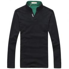 時(shí)尚立領(lǐng)黑色長袖T恤定做