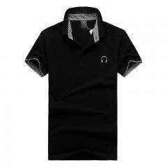 黑色棉質(zhì)雙領(lǐng)T恤衫