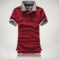 紅色男款短袖POLO衫加工設(shè)計 精梭棉材質(zhì)