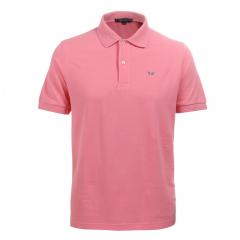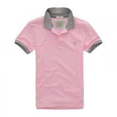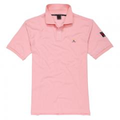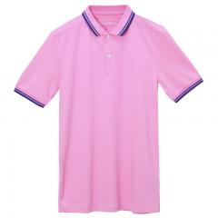 粉紅色男士翻領(lǐng)短袖T恤衫精梭棉材質(zhì)制作