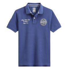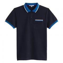 寶藍(lán)色男款短袖POLO衫 領(lǐng)袖門襟撞色時(shí)尚款式