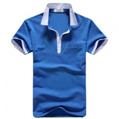 【定制】湖藍(lán)色男士T恤衫純棉POLO衫款式加工