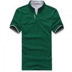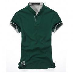 【定制】深綠色時(shí)尚小立領(lǐng)T恤衫訂制 男士流行款式