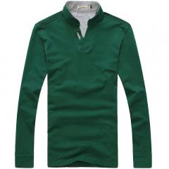 綠色男款V領(lǐng)長(zhǎng)袖T恤衫工廠加工制作 可寄樣品
