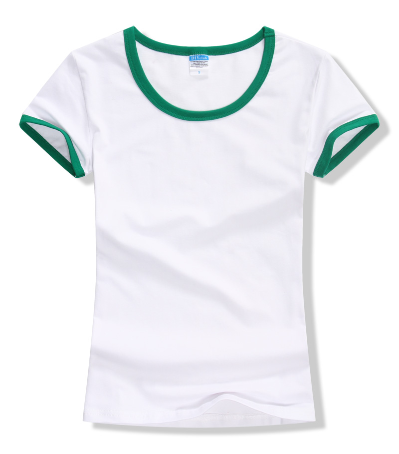 女裝圓領(lǐng)短袖T恤衫,領(lǐng)袖撞色款式,7個(gè)顏色現(xiàn)貨T恤衫批發(fā)
