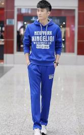 時尚藍(lán)色印花套頭連帽衛(wèi)衣