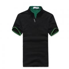 【定制】時尚黑色立領(lǐng)T恤衫制作 男士立領(lǐng)POLO衫加工