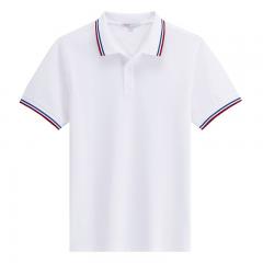 【定制】白色翻領(lǐng)短袖時尚T恤衫定制 印花繡花LOGO標識