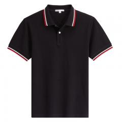 【定制】黑色襯領(lǐng)時尚T恤衫男士翻領(lǐng)T恤訂制-保羅