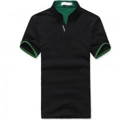 【定制】深綠色時(shí)尚小立領(lǐng)T恤衫訂制 男士流行款式